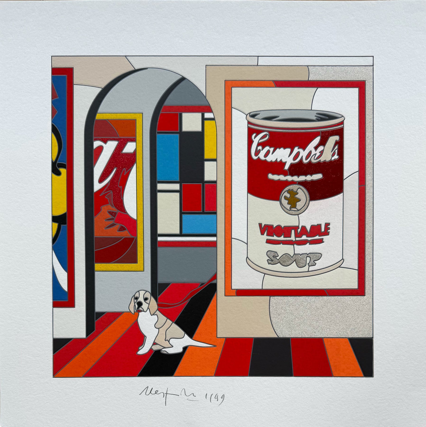 Opera del maestro Ugo Nespolo, realizzata con la sua inconfondibile tecnica di sintesi pittorica e formale.