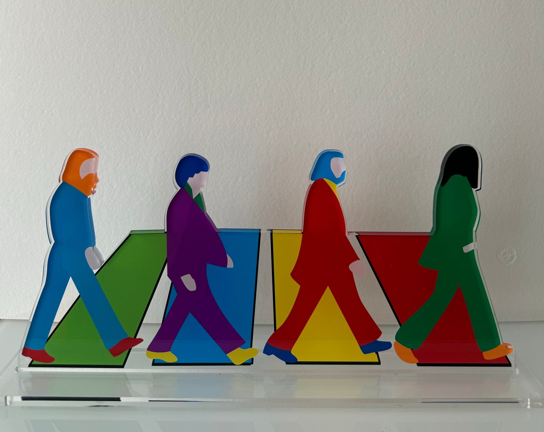 L'opera "Come Together" di Lodola cattura immediatamente l'attenzione con le sue forme stilizzate e i colori vivaci. I personaggi ritratti sembrano danzare in un magico equilibrio di tonalità, suggerendo un senso di unità e movimento perpetuo. Questa scultura non solo celebra l'iconicità di un'epoca, ma evoca anche un senso di nostalgia e gioia.