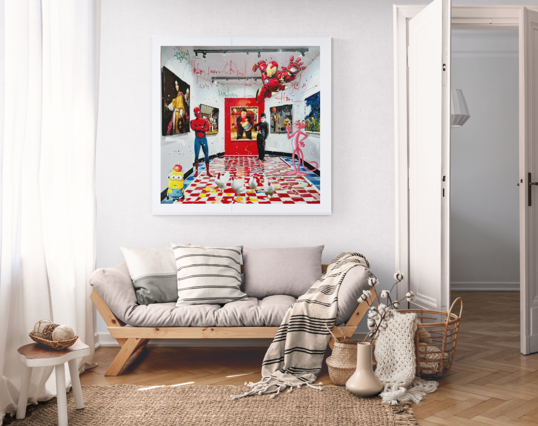 Opera in cornice artigianale bianca 118x118 cm
