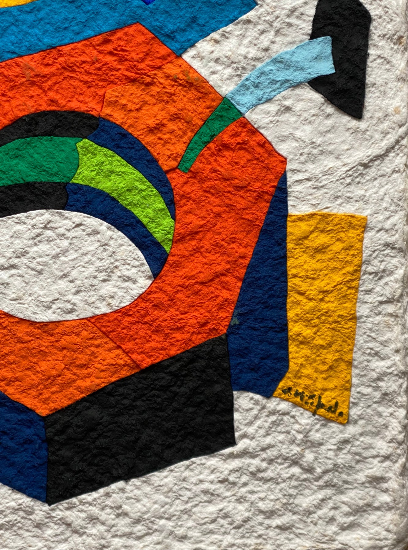 Opera unica di grande qualità del maestro Ugo Nespolo, soft painting su carta pressata, con autentica firmata di pugno dall’artista.