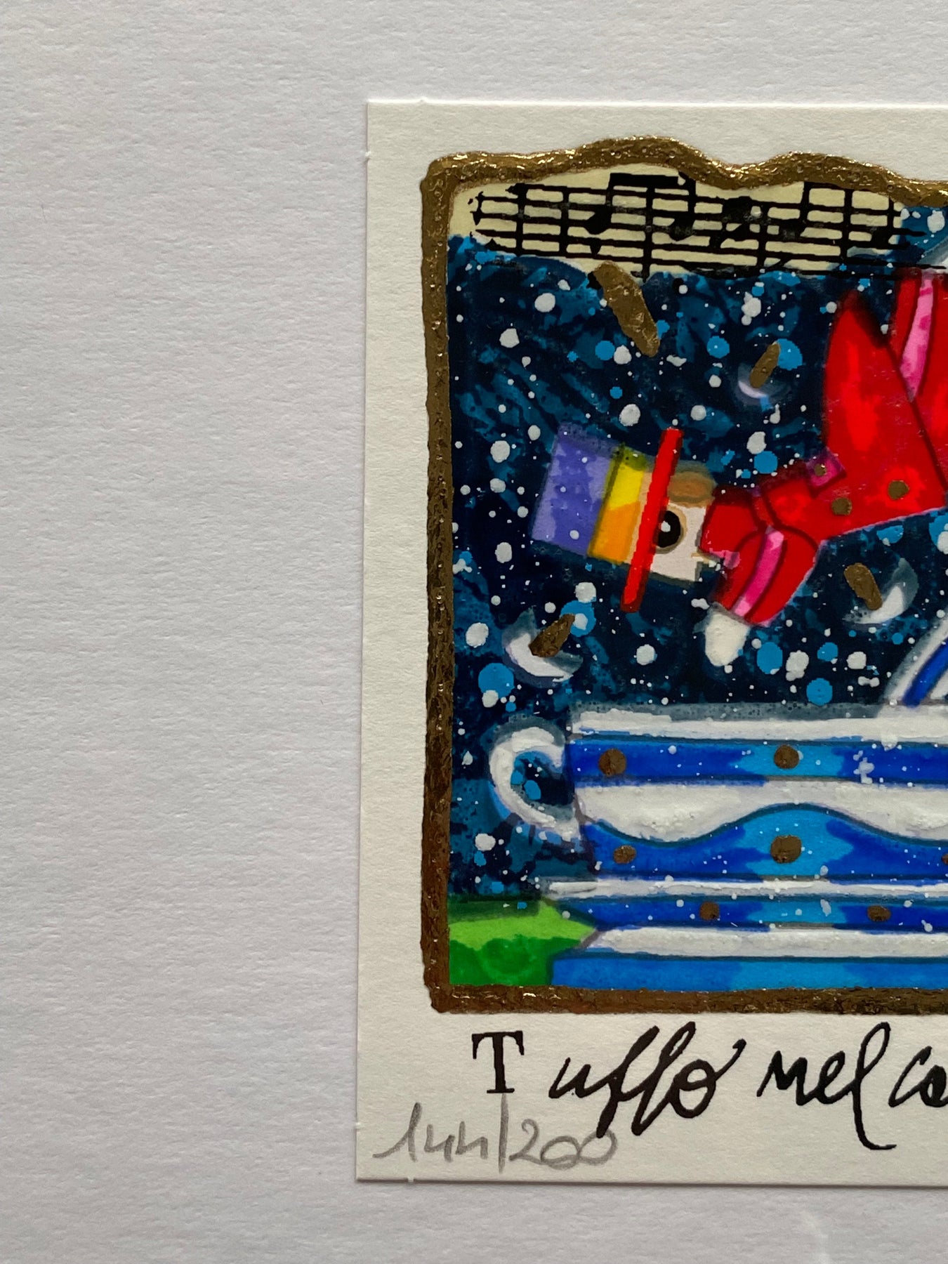 Serigrafia polimaterica del Maestro Francesco Musante con foglia oro, glitter e metalli.