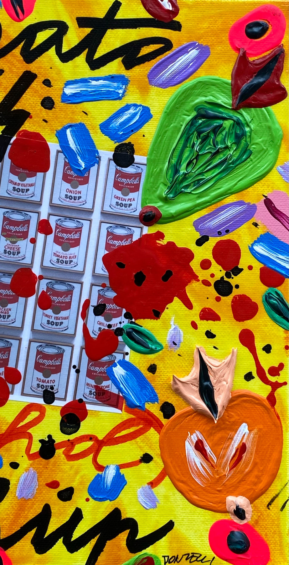 Opera unica del maestro Bruno Donzelli, la sua è una pittura narrativa, vivacissima anzi scoppiettante, che si nutre di spietate rivisitazioni, più che di citazioni.