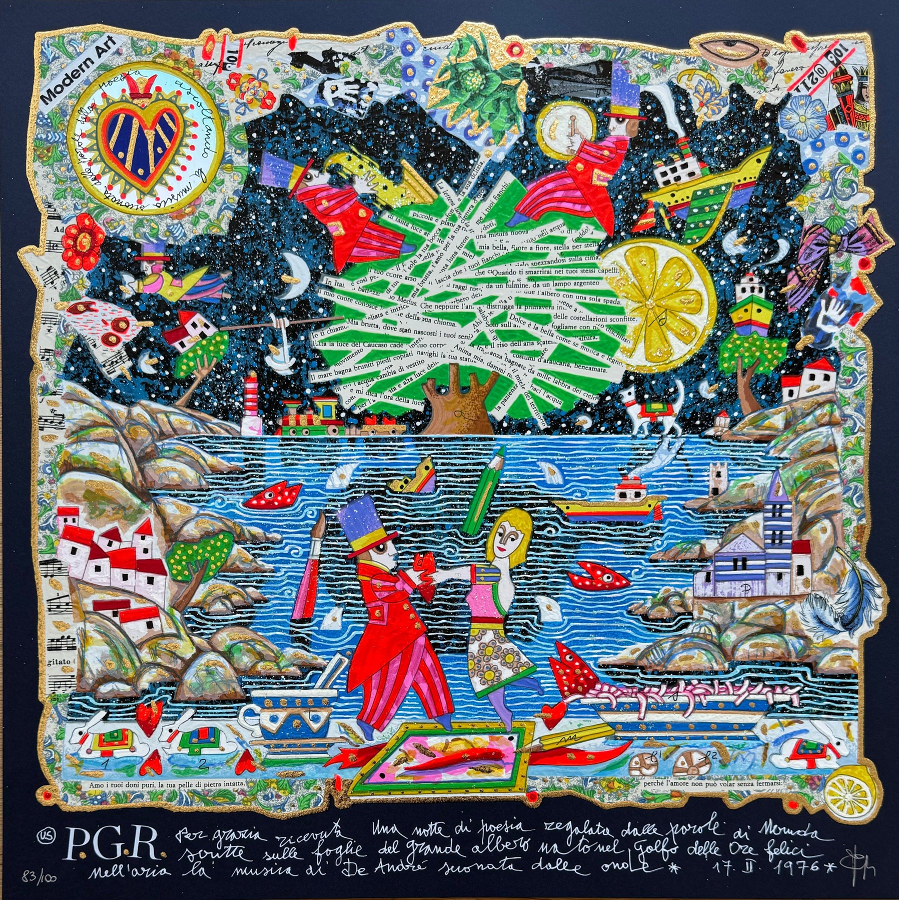 Serigrafia polimaterica del Maestro Francesco Musante con foglia oro, foglia argento, glitter e metalli.
